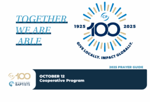 Pray that the blessing of Cooperative Program dollars will always be utilized for the glory of God. Pray that the local church will understand and rejoice in the significance of the Cooperative Program for Kingdom growth.