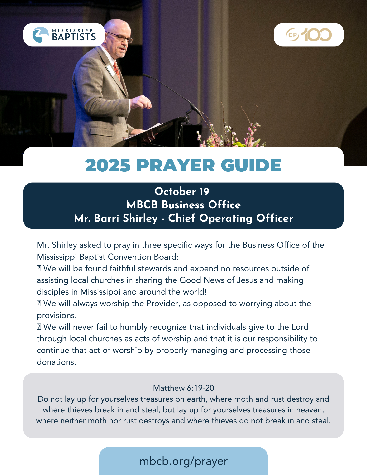 Mr. Shirley asked to pray in three specific ways for the Business Office of the Mississippi Baptist Convention Board:
